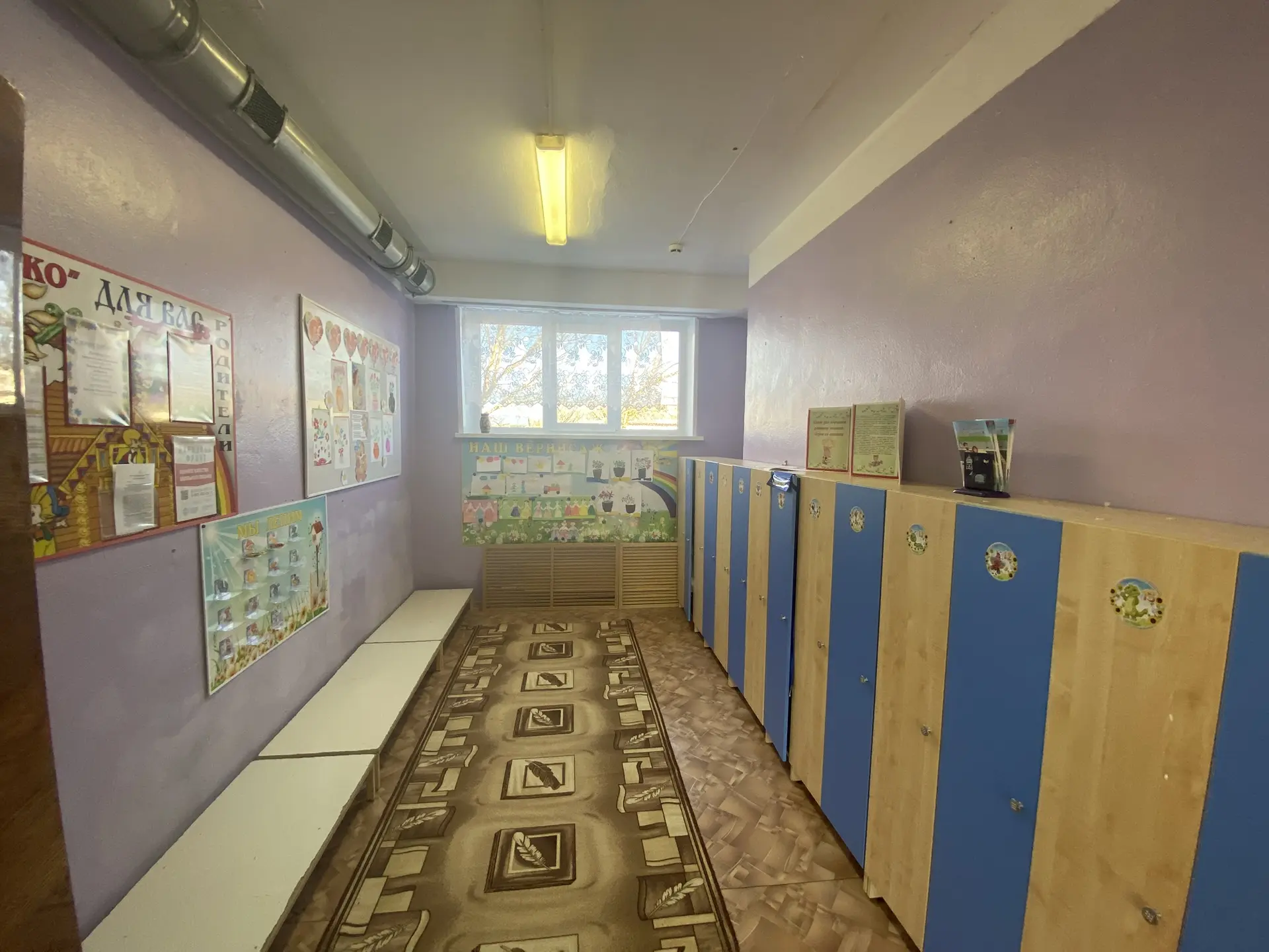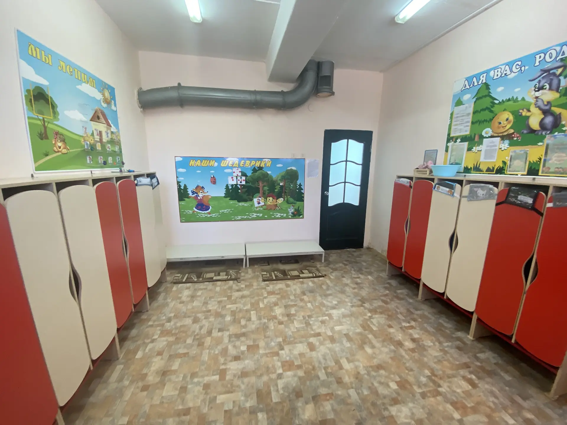 1. Раздевалка (приемная) – предназначена для приема детей и хранения верхней одежды. Раздевальные оборудованы шкафами для верхней одежды детей и персонала. Шкафы для одежды и обуви оборудованы индивидуальными ячейками - полками для головных уборов и крючками для верхней одежды. Каждая индивидуальная ячейка маркируется. В приемной расположены информационные уголки для родителей («Для вас, родители», «Меню», «Информация» и т.д.), куда помещается информационный материал для родителей, консультации, рекомендации специалистов.