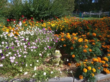 по всему периметру ДОУ расположены цветники.