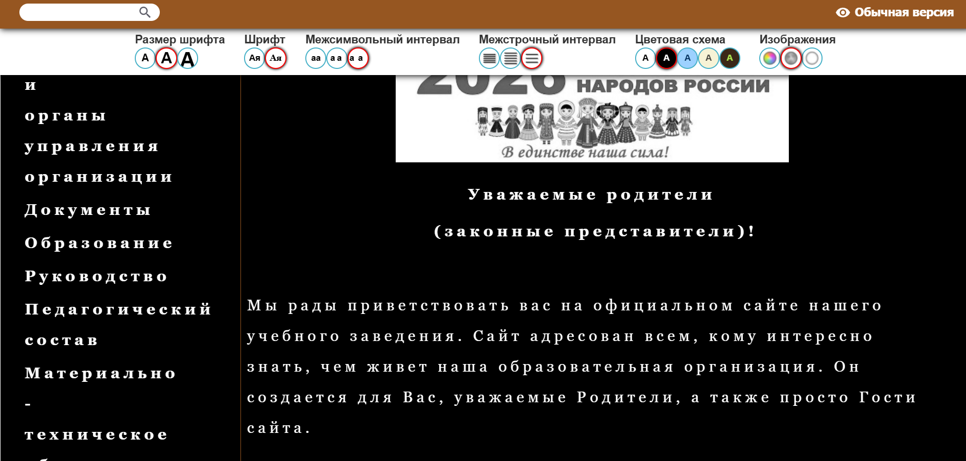 На сайте предусмотрена альтернативная версия для слабовидящих и инвалидов по зрению